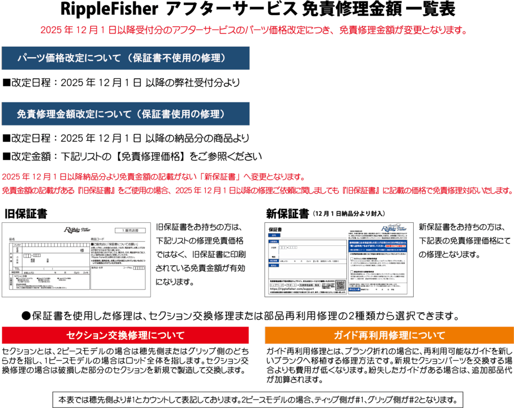 2025年12月1日に実施いたします製品価格改定に伴い、アフターサービスにおける修理料金につきましても改定を行わせていただくこととなりました。