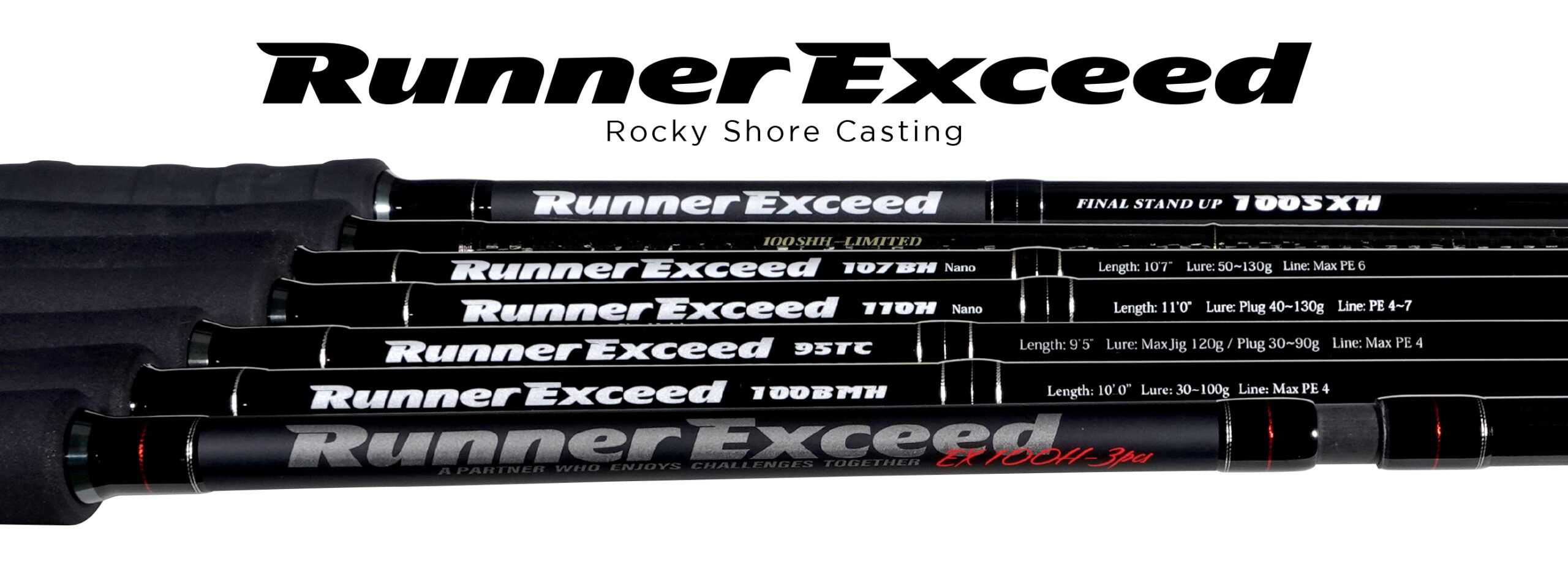 ランナーエクシードに待望のプラッキングに特化したライトモデル登場です。20gクラスのミノーから中型ダイビングペンシル等の操作性を追求したソフトティップを搭載し、また、大遠投やヒットレンジが深いときなど必要になるジグは90gまで対応可能です。パワー設定は5キロまでのヒラマサ・カンパチ・10キロオーバーのブリを想定。Nanoブランクの特性を発揮し、溜めながらスピーディーに浮かせるファイトが可能です。